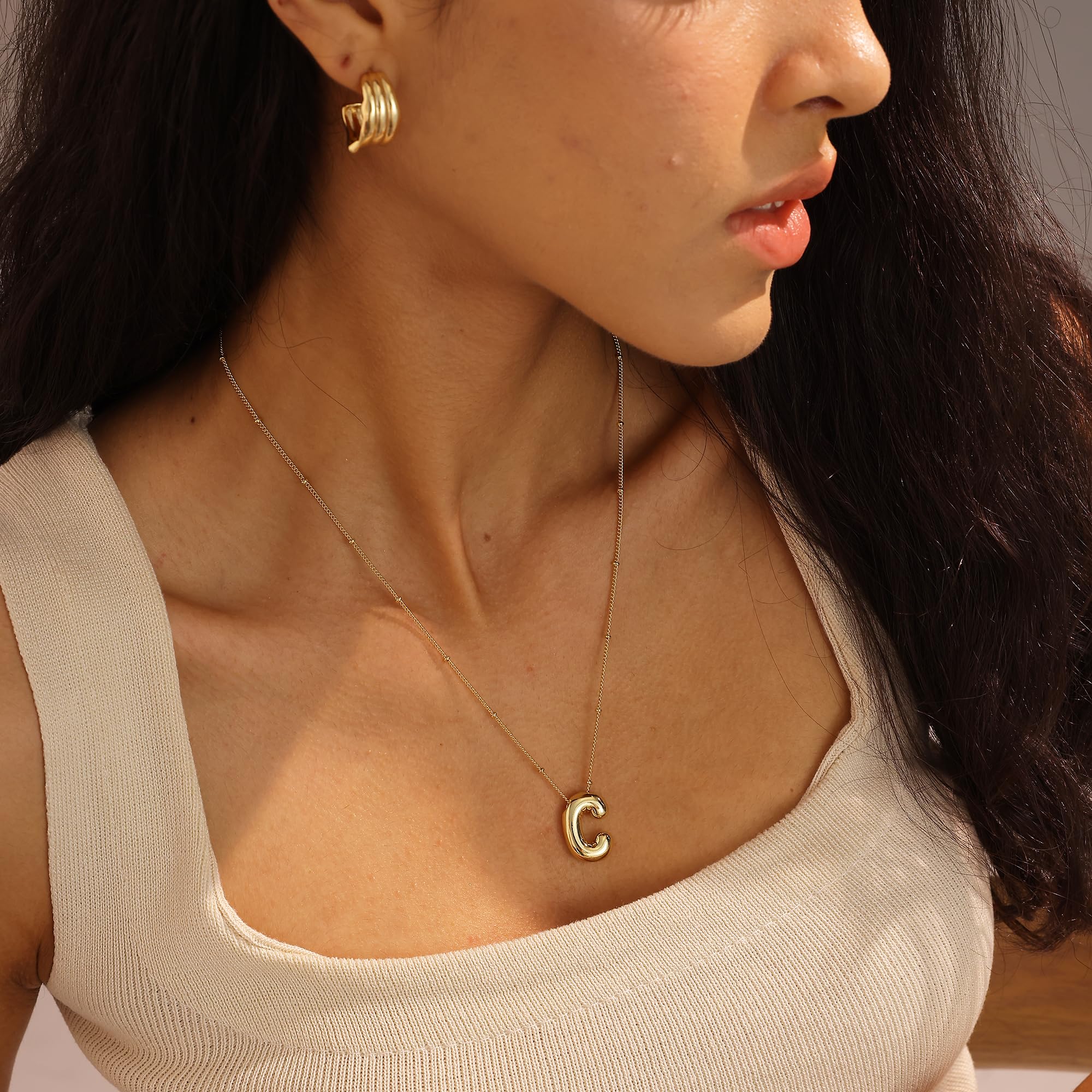 Letter Necklace for Women, Balloon Initial Letter Pendant Necklace Dainty Charm Initial Necklaces for Women Trendy Chunky Custom Name Necklace Jewelry for Womens